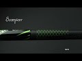 Butt Sleeve : Black with lime green slanted points, with a white Scorpion